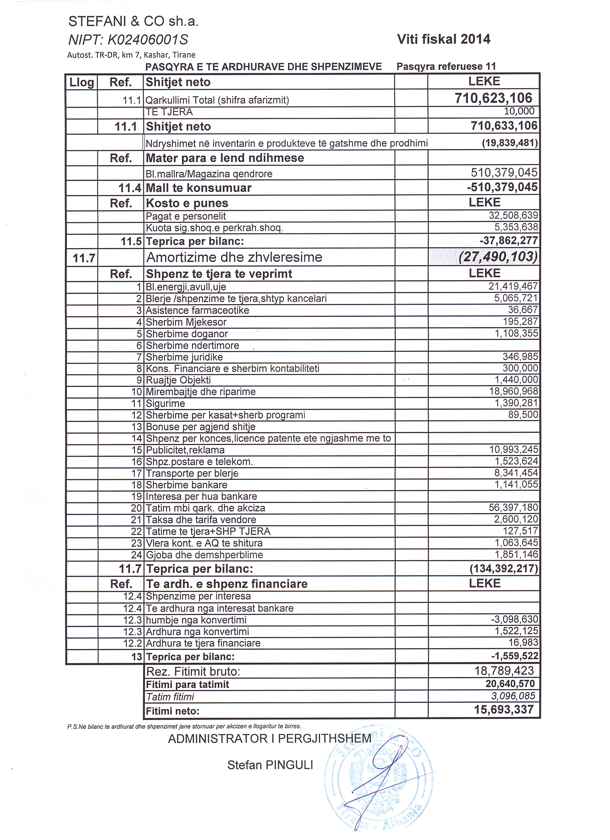 Fitimi para Tatimit(Lekë) 2014: 20 640 570,00