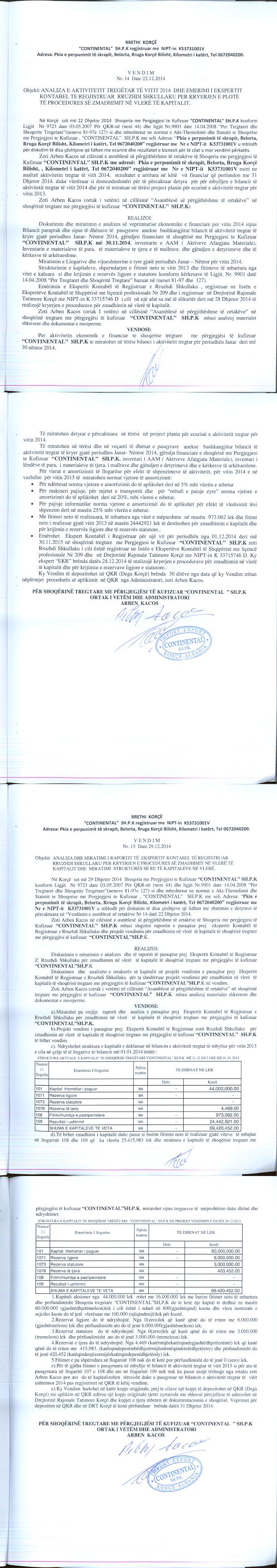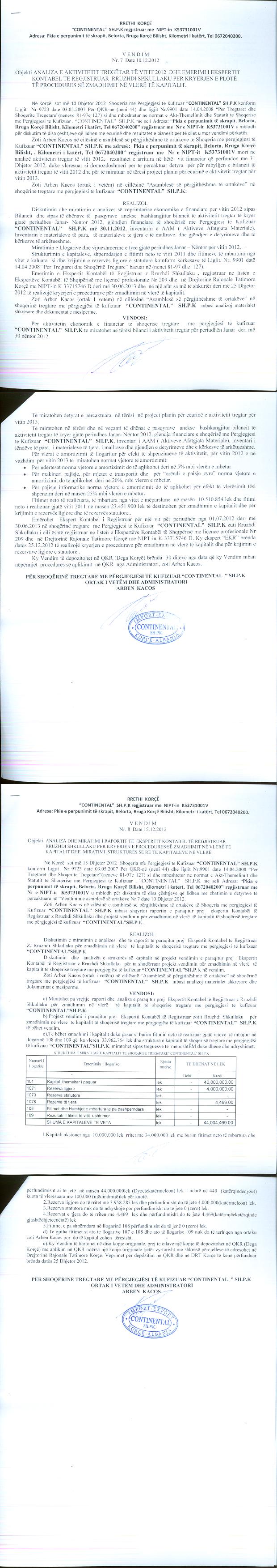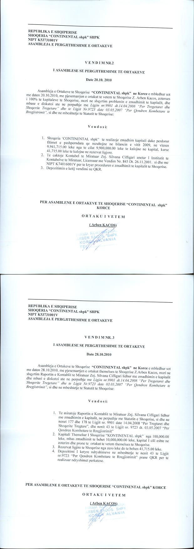 → Ekstrakt Historik i Regjistrit Tregtar date 22.09.2025 → Akt themelimi i Shoqerise → Vendimi per zmadhimin e kapitalit date 21.10.2010 → Vendimi per zmadhimin e kapitalit date 10.12.2012 → Vendimi per zmadhimin e kapitalit date 22.12.2014 |