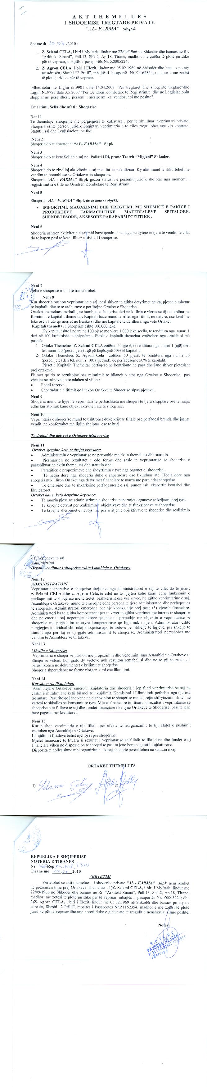 → Ekstrakt Historik i Regjistrit Tregtar date 04.10.2025 → Akt themelimi i Shoqerise |