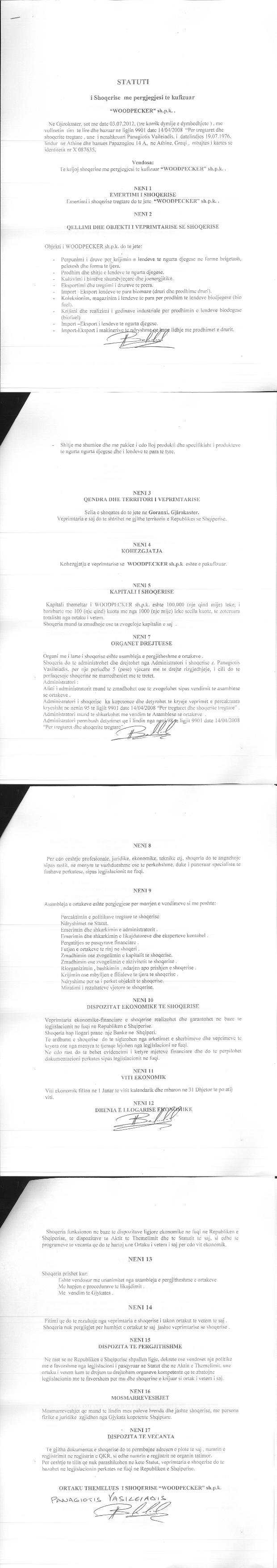 | Objekti i Veprimtarisë: | Perpunimi i druve per krijimin e lendeve te ngurta djegese ne forme brigatash,peletesh dhe forma te tjera.Prodhim dhe shitje e lendeve te ngurta djegese.Kultivimi i bimeve shumevjeçare dhe joenergjitike.Eksportimi dhe tregtimi i drureve te prera.Import-Eksport lendeve te para biomaze(druri dhe prodhime druri).Koleksionim,magazinim i lendeve te para per prodhim te lendeve biodjegese (biofuel).Krijimi dhe realizimi i godinave industriale per prodhimin e lendeve biodjegese (biofuel).Import-Eksport i lendeve te ndurta djegese.Import-Eksport i makinerive te ndyshme qe kane lidhje me prodhimet e drurit.Shitje me shumice dhe me pakice i cdo lloj produkti dhe specifikisht i produkteve te ngurta djegese dhe i lendeve te para te tyre.Eksport mbetje peleti, ashkla druri dhe mbetje te tjera druri.Ne fushen e studimeve dhe projektimeve per hartimin e planeve te menaxhimit te pyjeve , flores spontane ,te projekteve te pyllezimit , per studimin e mbritshmerise dhe ndertimin e rrugeve pyjore.Sistemime malore.Punimene kullota,livadhe dhe ndertim meremetim te vepraveper sigurimin e ujit te pijeshem.ndertime civile, ekonomike, tregetare.Ndertim vepra arti rrugore,ujesjelles,vepra kullimi.Ne fushen e perpunimit aktiv.Shfrytezimin e Qendrueshem te Pyjeve . |