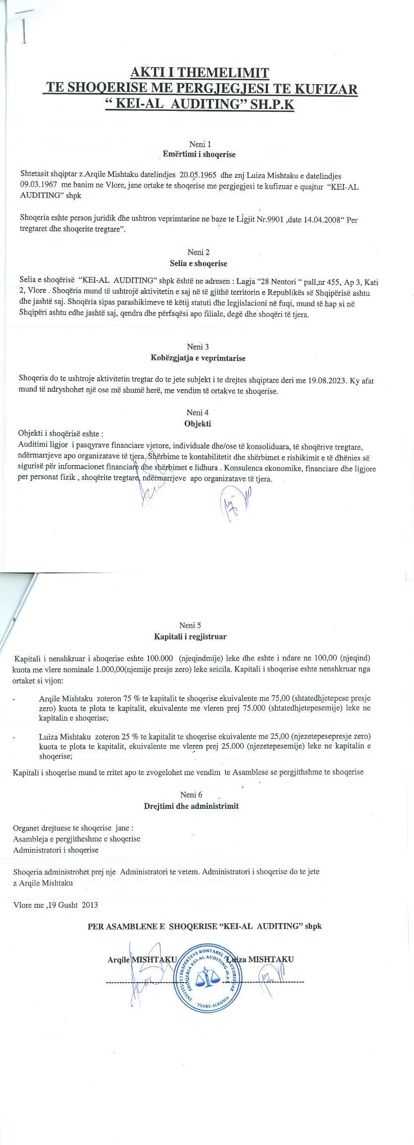 | Emërtime të tjera Tregtare: | KEI-AL AUDITING |