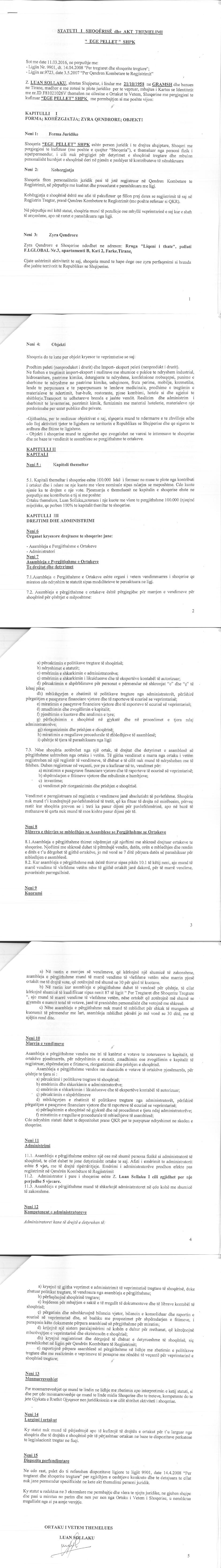 → Ekstrakt historik i regjistrit tregtar date 26.12.2025 → Statuti i shoqerise → Vendimi i asamblese dhe kontrata e shitblerjes se kuotave te kapitalit date 24.12.2018 → Kontrate shitje kuotash kapitali date 10.07.2025 → Vendimi i ortakut te vetem per aktivizimin e shoqerise date 24.04.2018 |